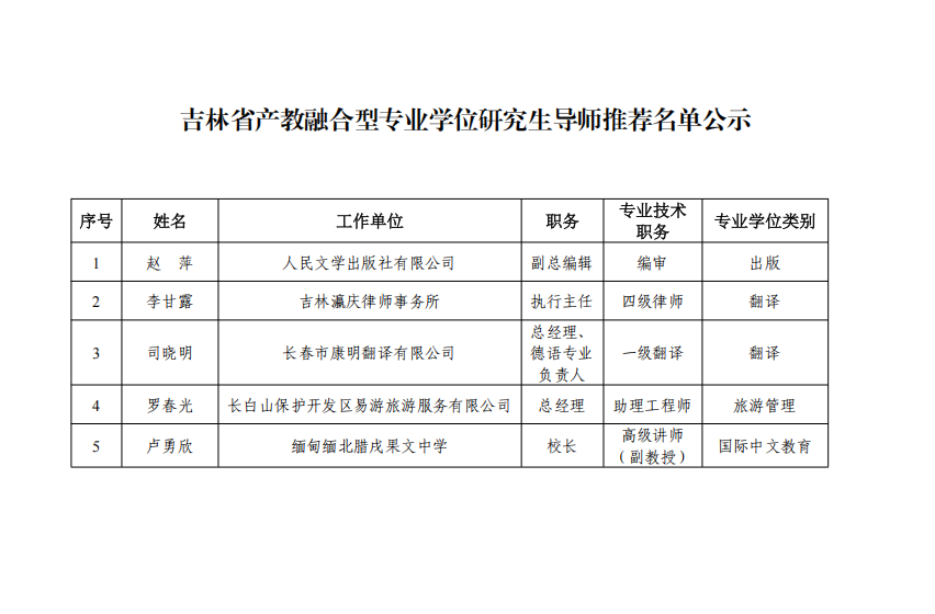 吉林省产教融合型专业学位研究生导师推荐名单公示