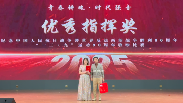 马克思主义学院以歌曲《一路生花》为参赛曲目,歌曲名即寓意着在奋斗路上绽放青春、播种希望,曲目既是对青春梦想的诗意表达,也是对历史征程中无数先驱者默默奉献、静待花开的真挚礼赞。马克思主义学院参赛队伍获得本次比赛三等奖。同时,该院学科教学(思政)专业研究生吕筱涵同学获“优秀指挥奖”。